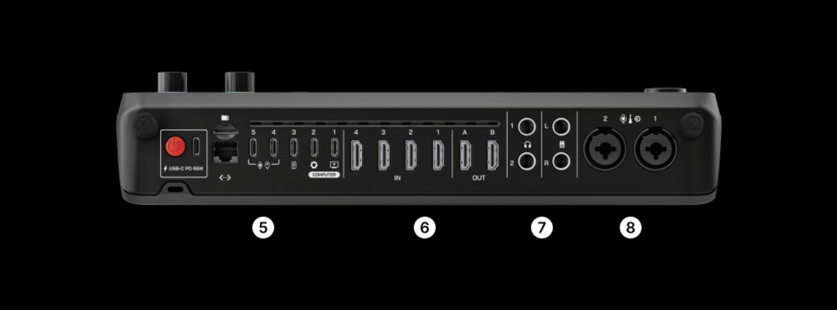 Ekstra video ve ses seçenekleri için iki web kamerasını veya RØDE USB mikrofonunu USB 4 ve 5 üzerinden bağlayın.