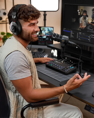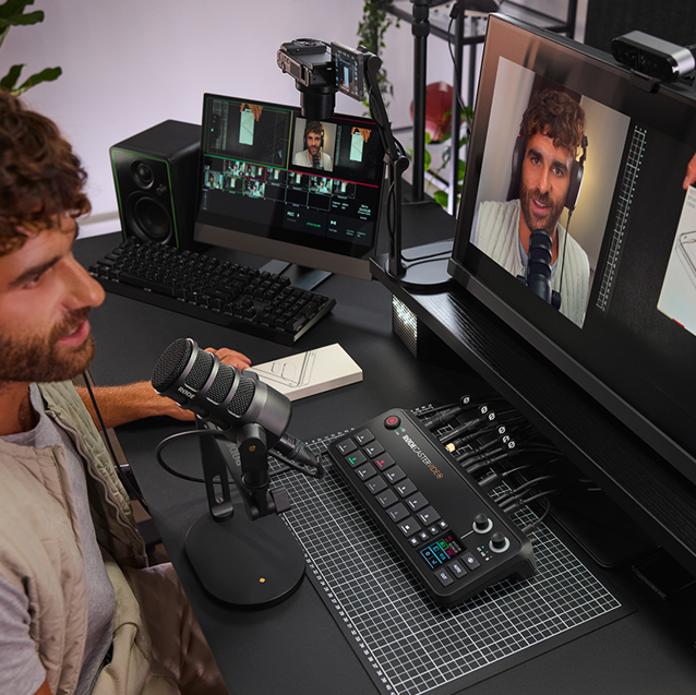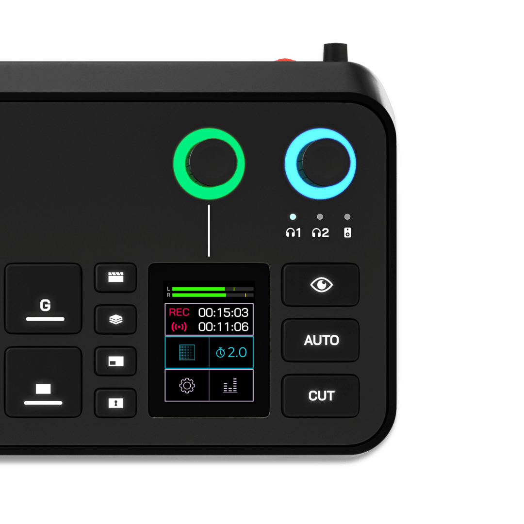 Profesyonel prodüksiyonlar oluşturmak hiç bu kadar kolay olmamıştı. RØDECaster Video'nun sezgisel arayüzü ve dinamik dokunmatik ekranı, video geçişlerinden karmaşık çok kaynaklı setupların yapılandırılmasına, sesinizi karıştırıp işlemeye kadar şovunuzun her öğesini doğrudan kontrol etmenizi sağlar.