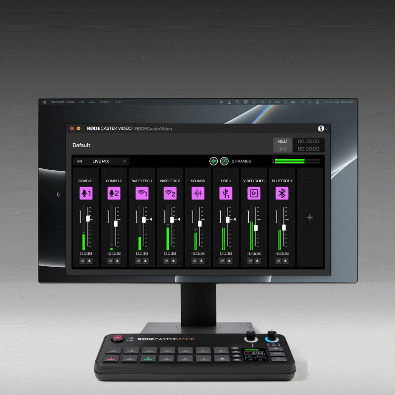 Konsola yakın olamayacağınız kurulumlar için RØDECaster Video, RØDE Central üzerinden tam kablosuz uzaktan kontrol imkanı sunar. Bu sayede, bilgisayarınızdan girişleri değiştirebilir, ayarları yapabilir ve karmaşık sahneleri yapılandırabilirsiniz.