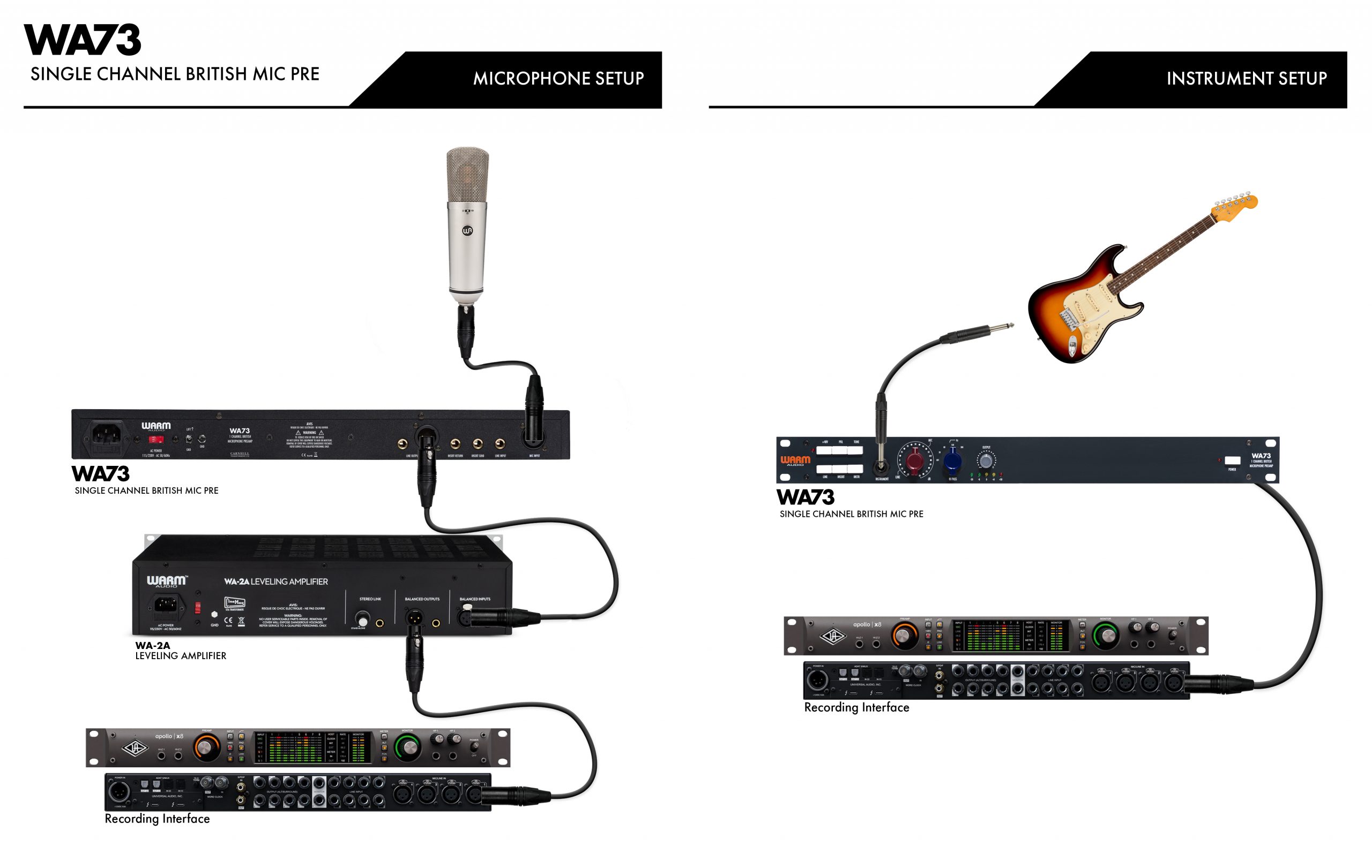 Ses mühendislerinin pop/rock tarzı kayıtların sound'unu on yıllarca belirlemiş olan bir preamp stili konusunda ortak karar vermesi gerekirse bu tartışmasız 73-stili mikrofon preamplifikatörü olacaktır. 73-stili mikrofon preamplifikatörleri sayısız kayıt ve konserde kullanılmış olup halen preamp seçeneklerinin kutsal kasesi olarak görülmektedir. WarmAudio WA73 ailesi de işte bu efsanevi preamplifikatörleri asıllarına sadık kalarak modern teknoloji ile kullanımınıza sunmaktadır.