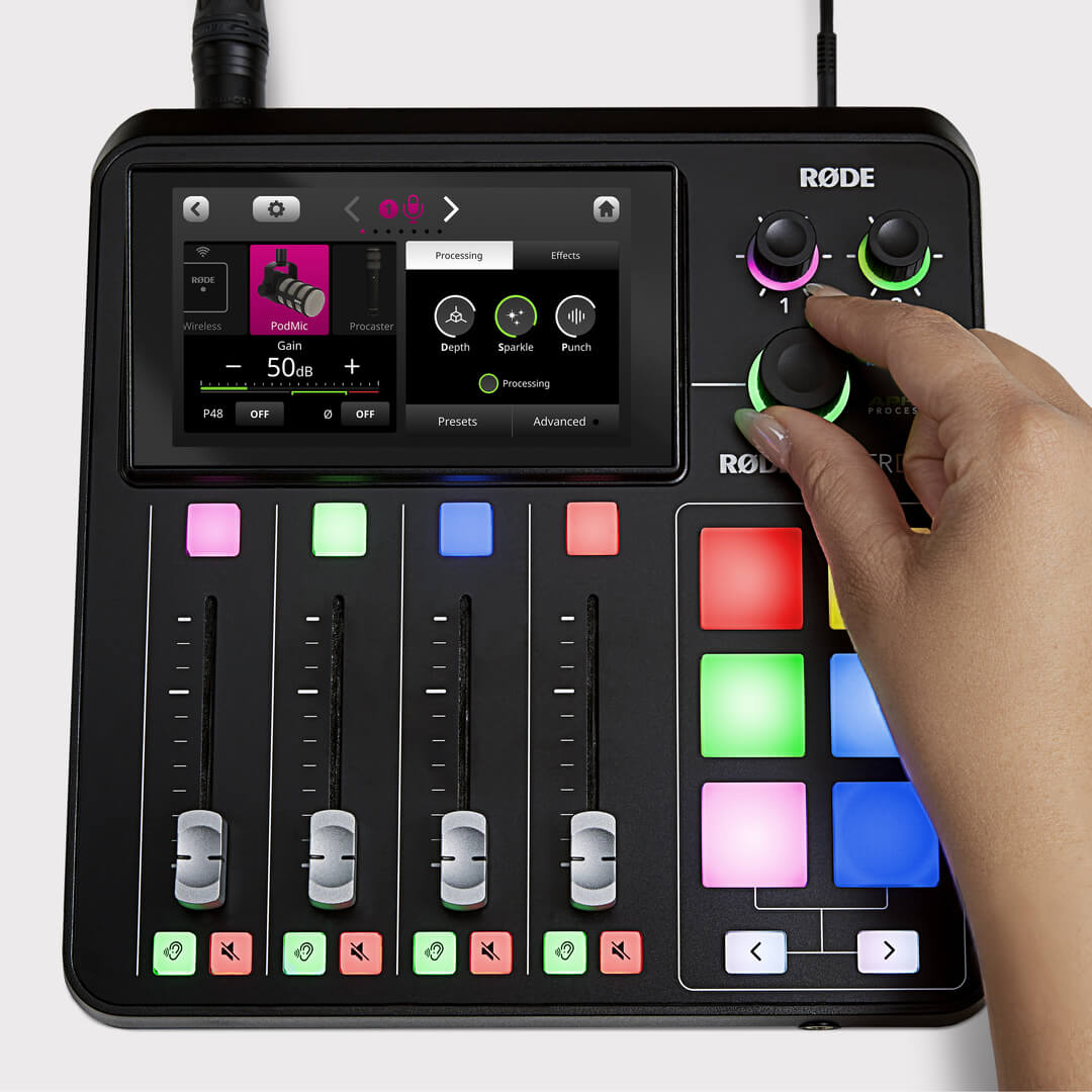 RØDECaster Duo, büyük yüksek çözünürlüklü dokunmatik ekranı, dokunsal rotary kodlayıcısı ve yayın kalitesindeki faderlarıyla hem son derece kullanımı kolaydır hem de sesinizin her yönünü kontrol etmenizi sağlar. Projenizi ayarlarını saniyeler içinde yapabilir, profesyonelce hazırlanmış presetler ve sezgisel VoxLab™ ses işlemcisi sayesinde mükemmel sound'u bir düğmeye dokunarak veya bir düğmeyi çevirerek oluşturabilirsiniz. Harika içerikler oluşturmak hiç bu kadar kolay olmamıştı.