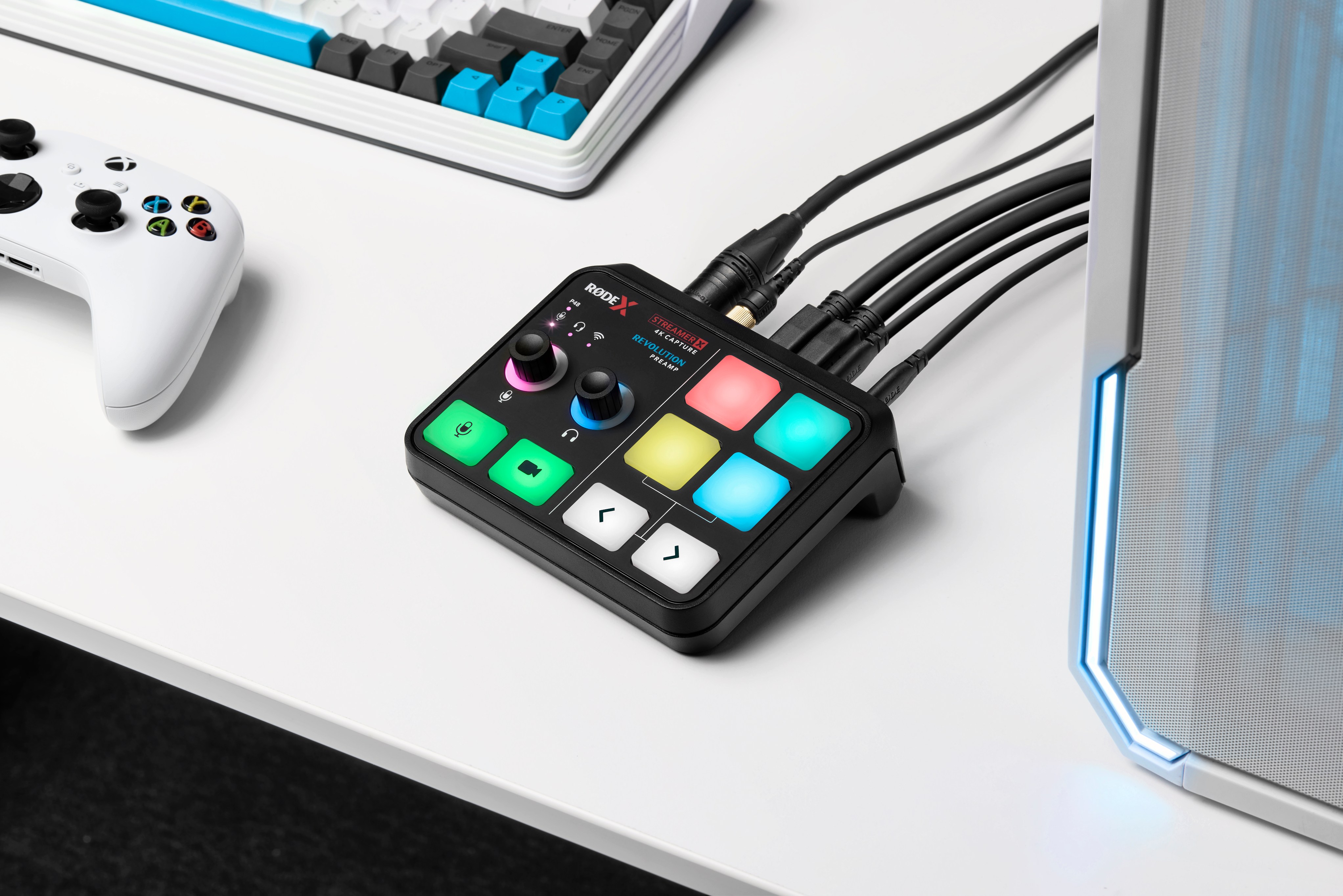 Karmaşık ve bir çok cihazdan oluşan bir kurulumu, çok daha az karmaşıklıkla daha iyi kalite sunan tek bir kompakt cihazla değiştirin. Kutudan çıkar çıkmaz XLR mikrofonlar, kulaklıklar, enstrümanlar ve hatta RØDE kablosuz sistemleri ile kamera, bilgisayar ve konsolları birleştirerek yayınınızı birkaç dakika içinde başlatabilirsiniz. Kıymetli masa alanınızı minimum seviyede işgal eden sezgisel bir tasarıma sahip olan Streamer X, canlı yayınları yönetmek için yepyeni bir devrimi temsil ediyor.