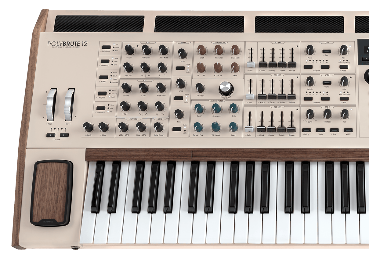 PolyBrute 12, klasik klavye hissini korurken eşsiz düzeyde ses kontrolü sunan yeni nesil MPE teknolojili polifonik bir klavyeye sahiptir - Morphée kontrolcü ve ribbon denetleyici'de PolyBrute 12'yi gerçek bir expressive canavara dönüştürüyor.