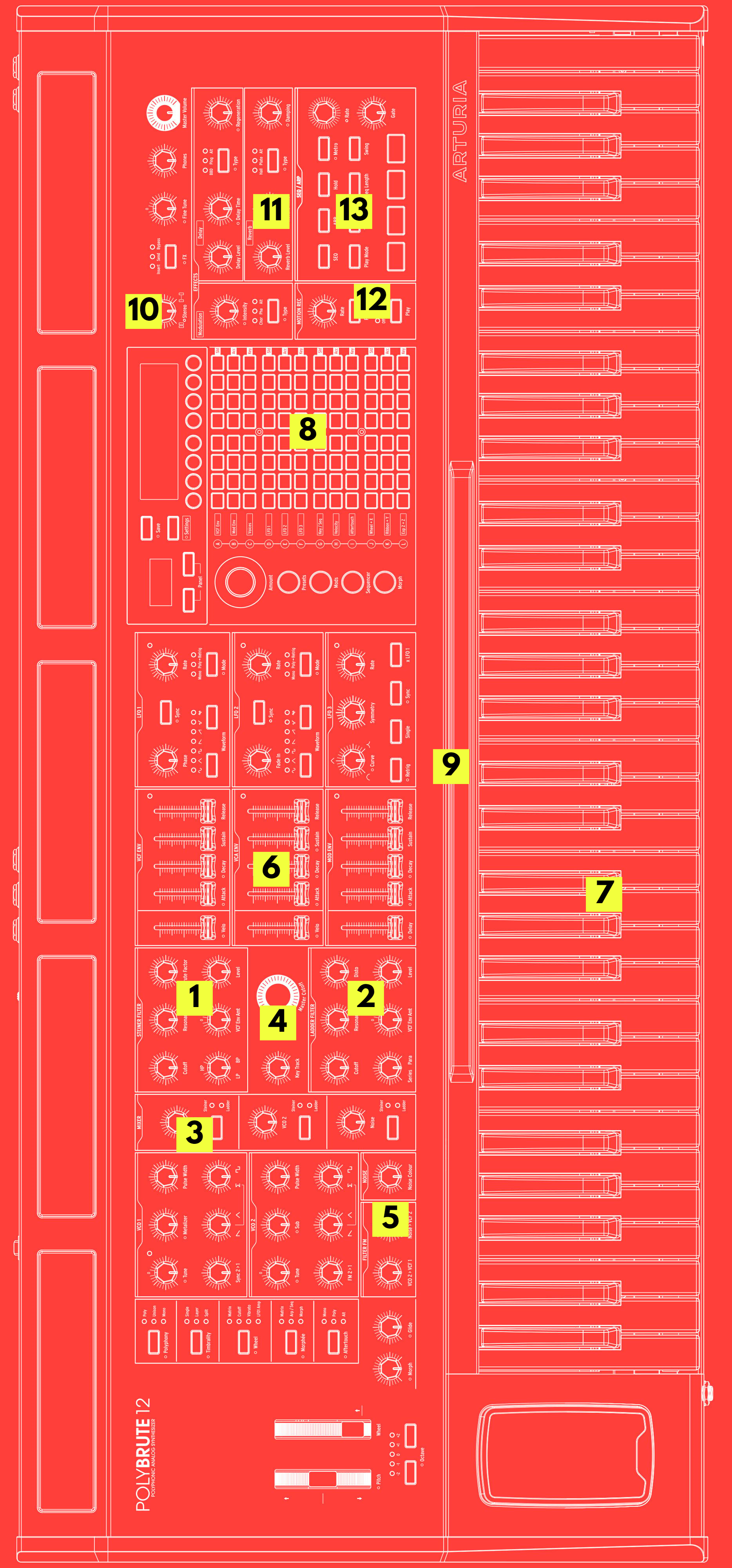 Explore PolyBrute 12’s interface in detail, including its unique voice controls, its advanced Modulation Matrix, and its array of evolved expression tools.